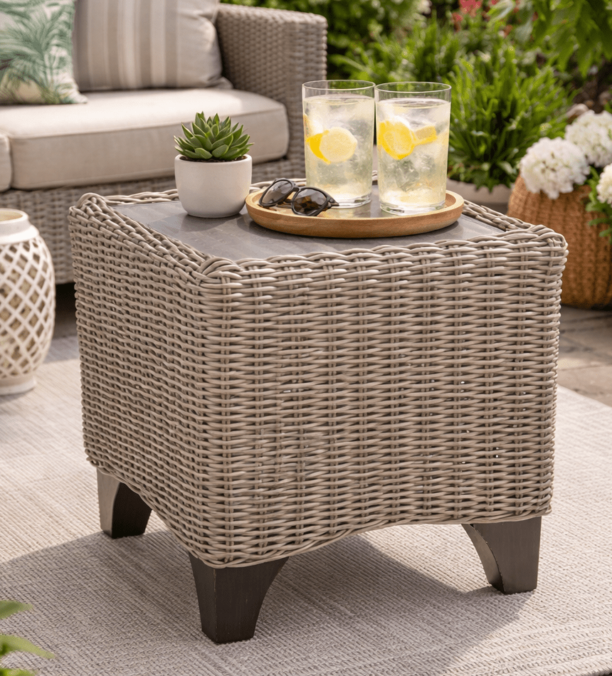Natural wicker offers classic charm and indoor elegance. Synthetic wicker (resin) is engineered for outdoor durability and weather resistance.
