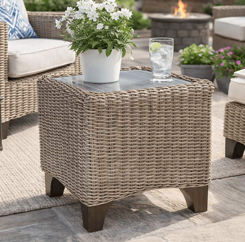 Natural wicker offers classic charm and indoor elegance. Synthetic wicker (resin) is engineered for outdoor durability and weather resistance.