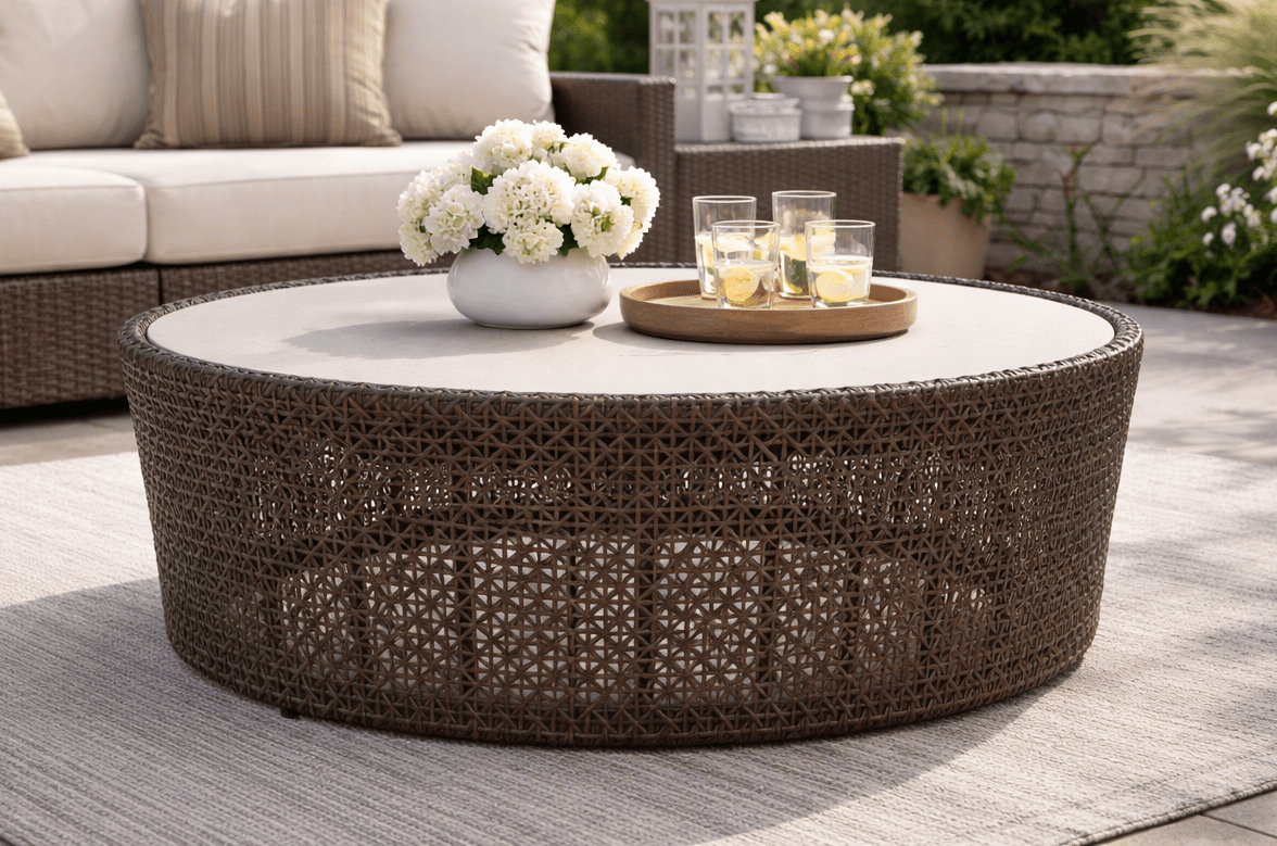Natural wicker offers classic charm and indoor elegance. Synthetic wicker (resin) is engineered for outdoor durability and weather resistance.