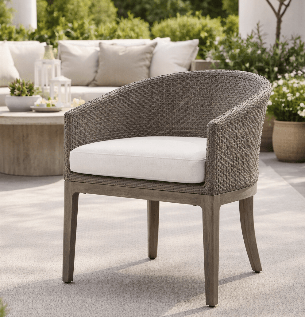 Natural wicker offers classic charm and indoor elegance. Synthetic wicker (resin) is engineered for outdoor durability and weather resistance.