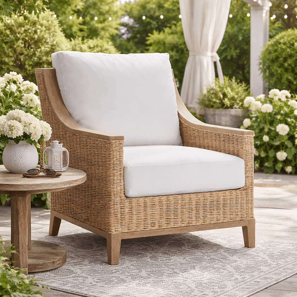 Natural wicker offers classic charm and indoor elegance. Synthetic wicker (resin) is engineered for outdoor durability and weather resistance.