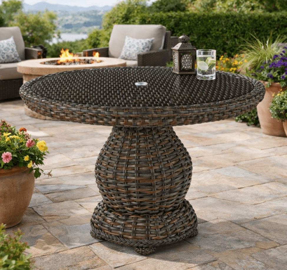 Natural wicker offers classic charm and indoor elegance. Synthetic wicker (resin) is engineered for outdoor durability and weather resistance.