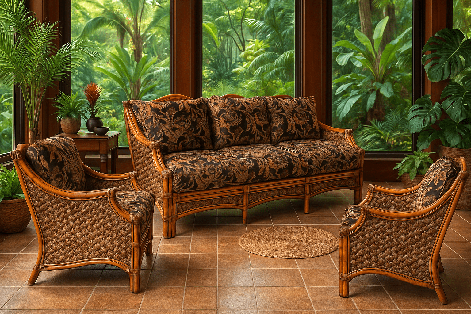 Spice Islands Mauna Loa Brownwash Rattan Set Of 3: 2 Chairs and Sofa