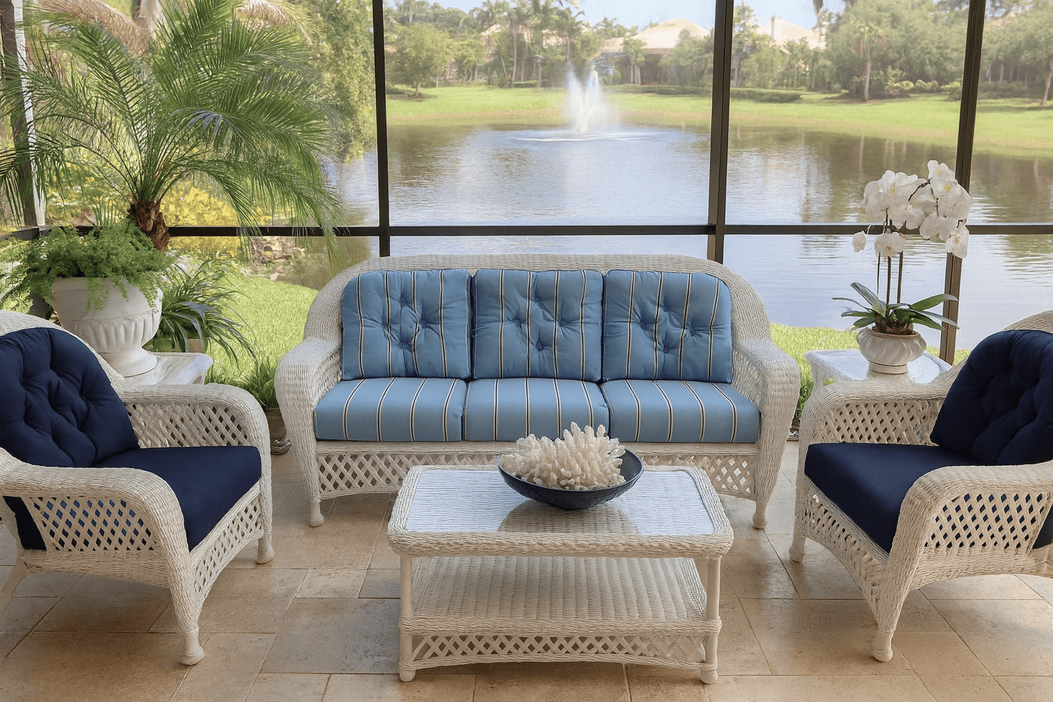 Synthetic wicker offers the timeless charm of natural wicker with added protection against the elements.