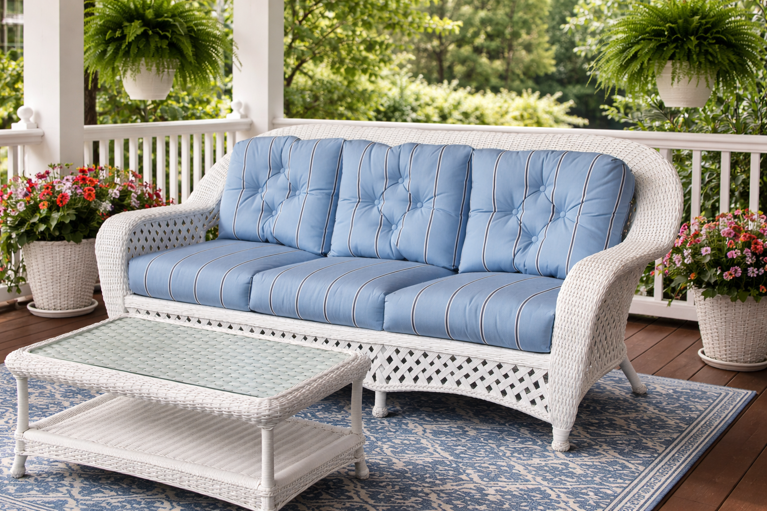 Synthetic wicker offers the timeless charm of natural wicker with added protection against the elements.