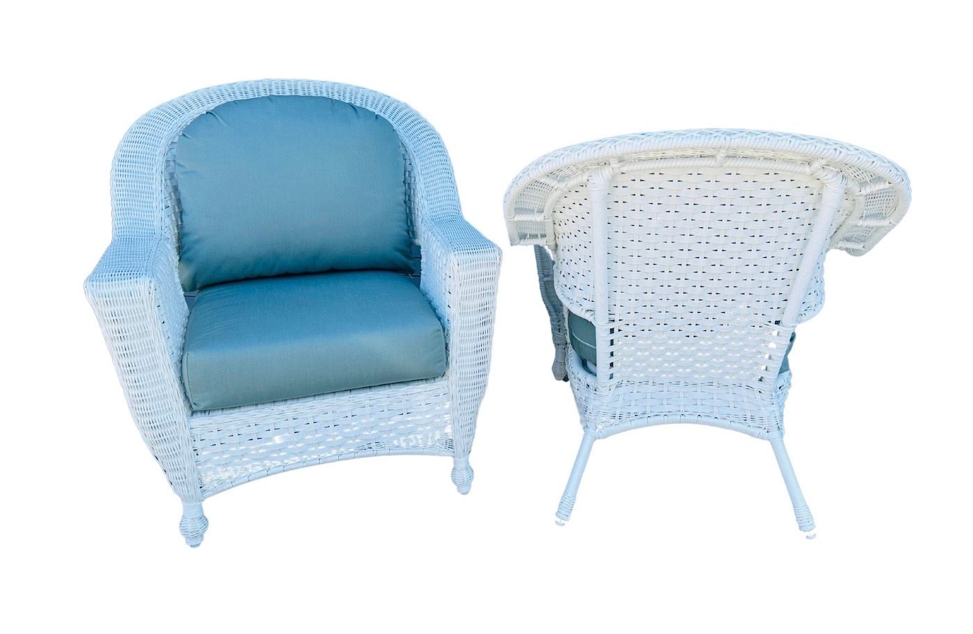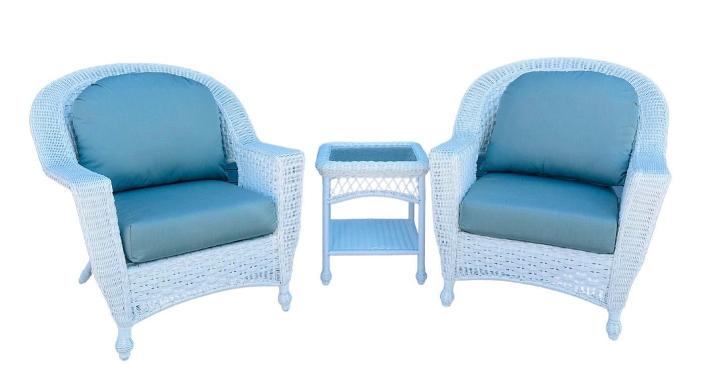 North Cape White Wicker Set of 3 - 2 Chairs and 1 End Table With Sunbrella Spa Fabric.