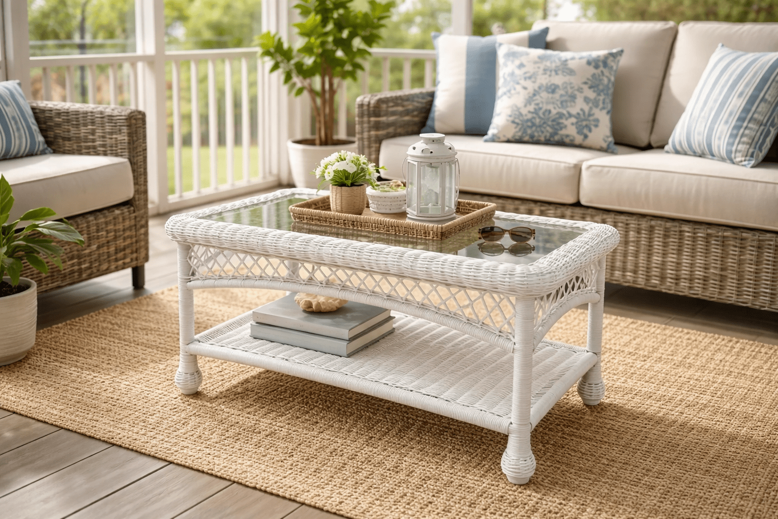 Outdoor Wicker Coffee Table: Cape Cod Collection (Available in 4 Finishes)