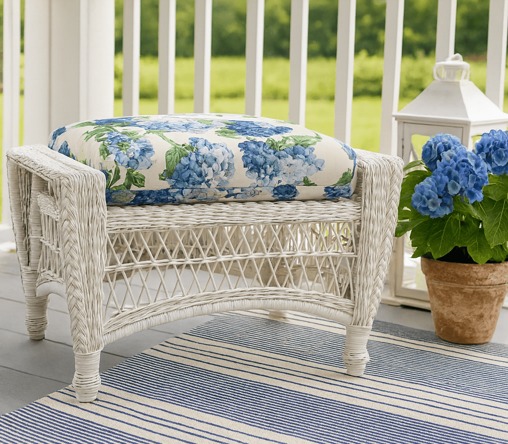 Outdoor Wicker Ottoman: Cape Cod Style (Available in 3 Finishes)