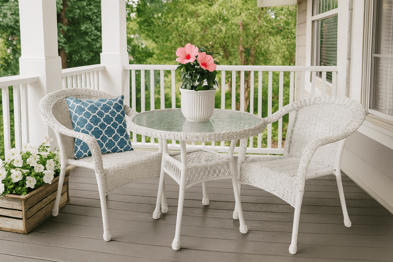 If you get nicks or scratches on your natural white wicker furniture you can use a white out product and brush the product on your wicker to renew it. You can also use Krylon spray paint to retouch your white wicker furniture.Cleaning and Care for your Furniture and Cushions are simple with our premium quality products and will ensure that you enjoy them for many years to come!