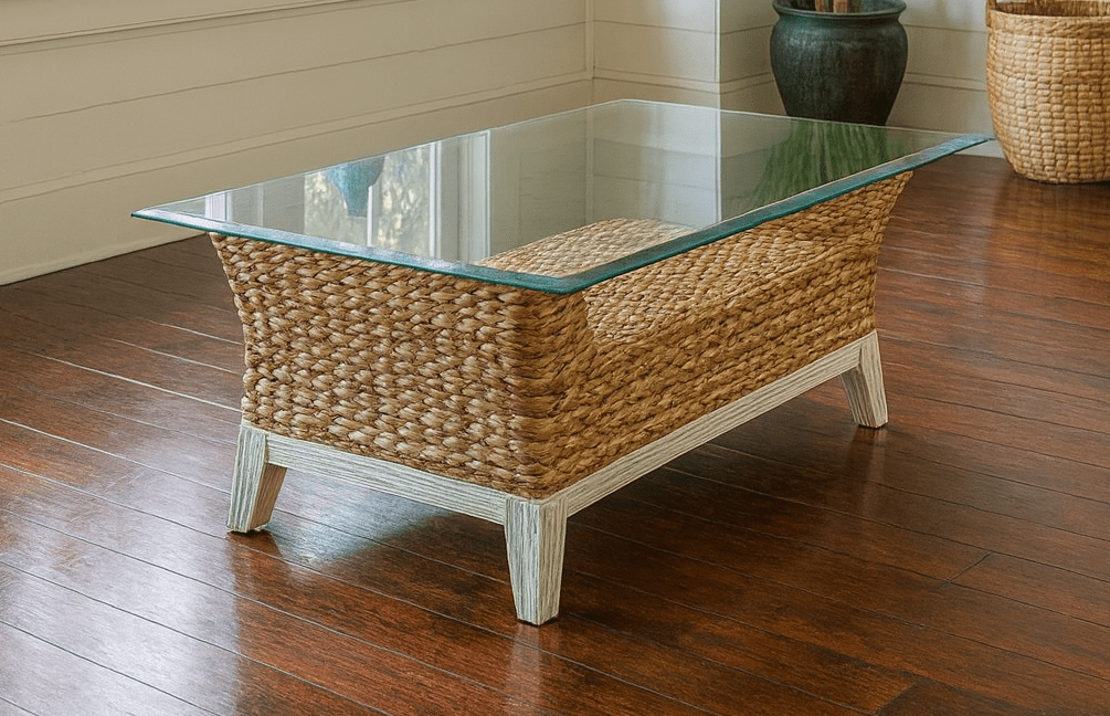 Palm Bay Banana Leaf Coffee Table With Glass Top
