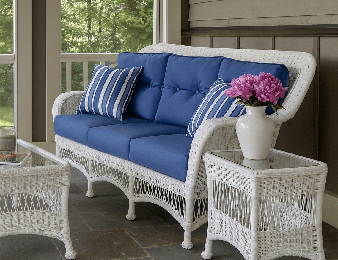 Synthetic wicker offers the timeless charm of natural wicker with added protection against the elements.