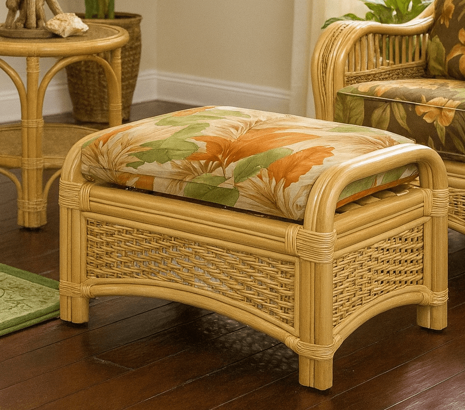 The Tropical Breeze Rattan Ottoman has the touch of class for your seating area you're looking for! Plus, it has a lot of functions: Put up your feet or place a tray on this ottoman to use as a little table for coffee or tea! Some people even keep an ottoman in the room for an extra seat. Besides having so many purposes, the rattan ottoman has an exotic, sophisticated look that is unlike any other you will find.