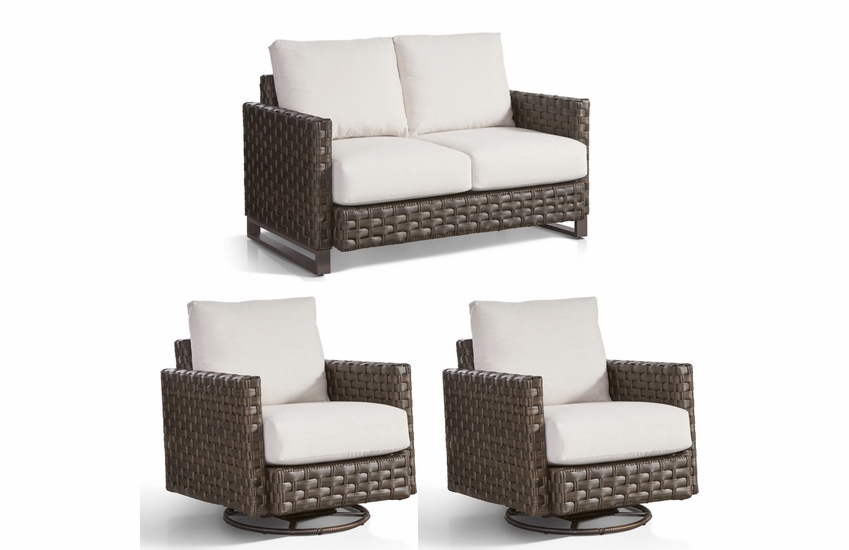 Sorrento Outdoor Wicker Set of 3: Loveseat and 2 Swivel Chairs