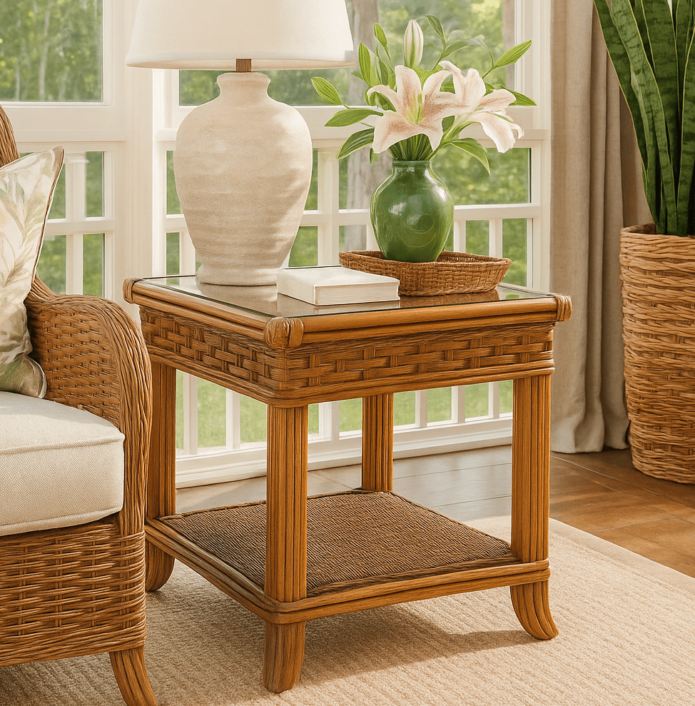 Braxton Culler Somerset Rattan End Table with Glass Top
