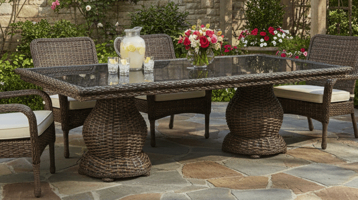 Natural wicker offers classic charm and indoor elegance. Synthetic wicker (resin) is engineered for outdoor durability and weather resistance.