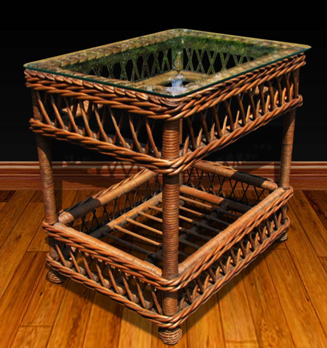 Spice Islands Bar Harbor Wicker End Table With Glass Top in Brown