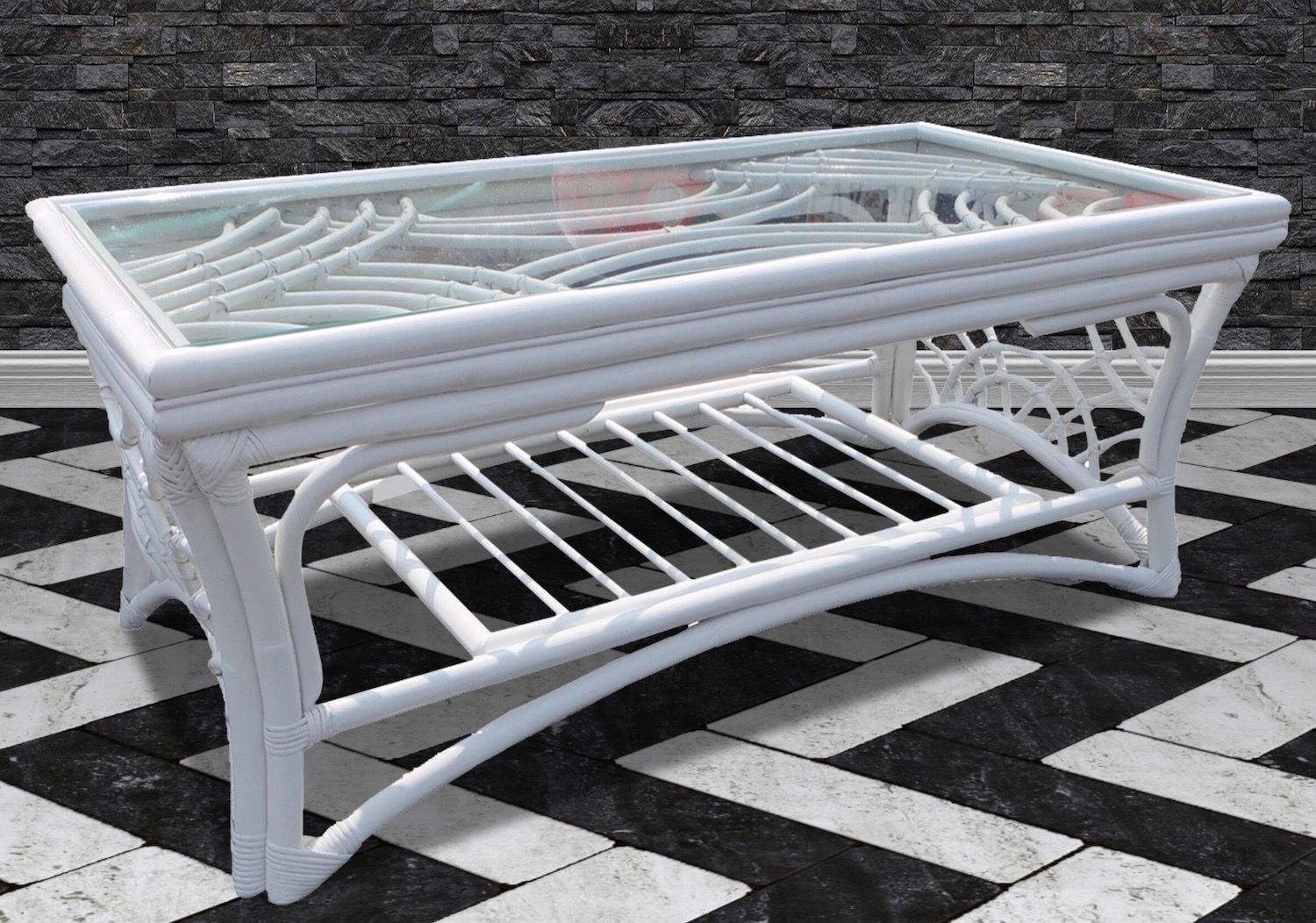 Spice Islands Bali White Rattan Coffee Table With Glass Top