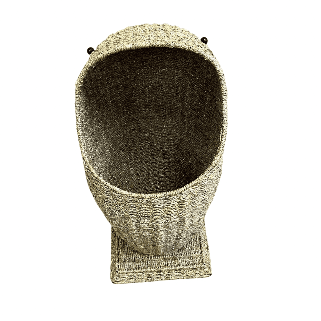 This unique woven wicker hamper is made to look like a whale. Features eyes and wide opning for laundry.